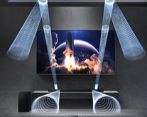 Cu 3 canale principale, 1 subwoofer și 2 difuzoare îndreptate în sus, această soundbar creează un mediu audio complet pentru o experiență de vizionare captivantă.