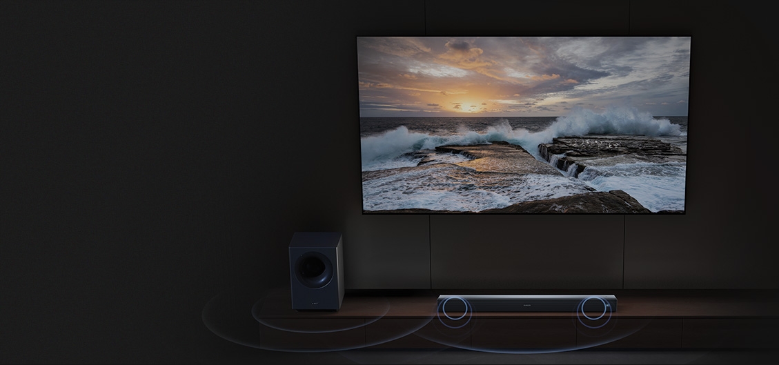Внешний беспроводной суперсабвуфер расширяет звуковую сцену, обеспечивая детальное и насыщенное звучание с четким разделением высоких, средних и низких частот. Наслаждайтесь кинематографическим звуковым опытом с мощными, глубокими басами.