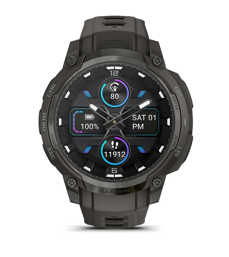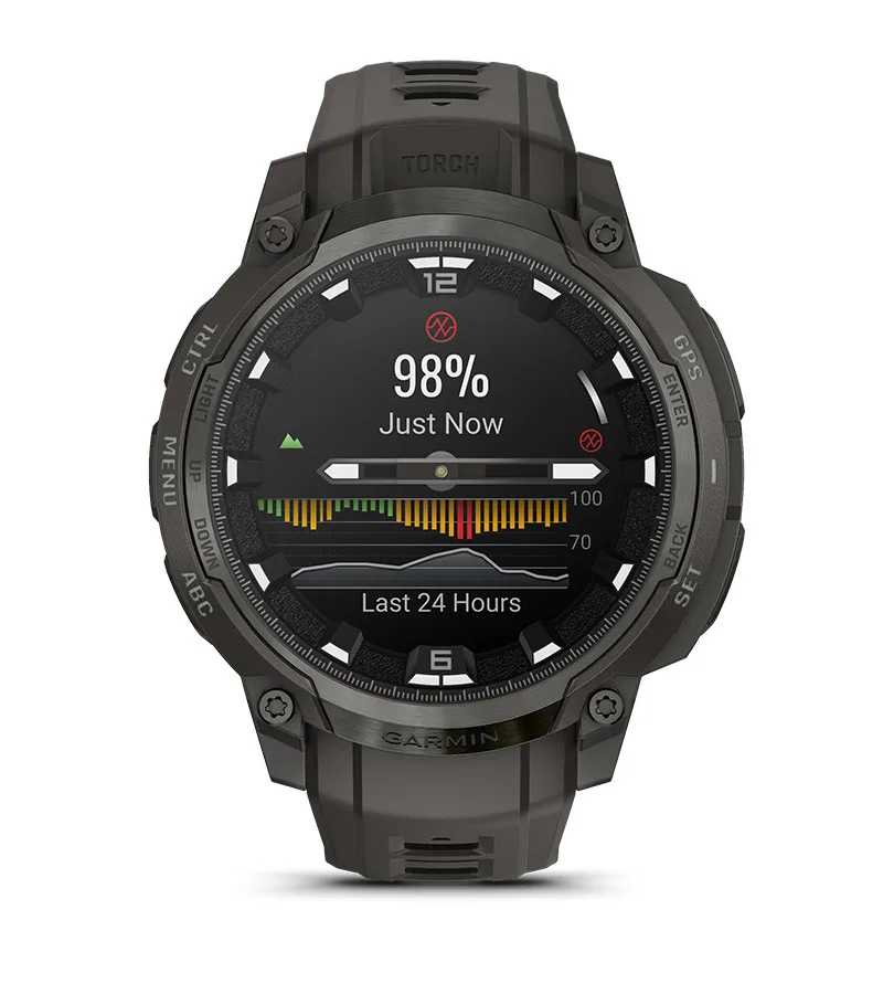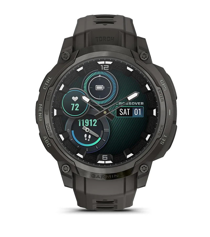 С цветным экраном 1,2″, аналоговыми стрелками, встроенным фонариком и многим другим — Instinct Crossover AMOLED — это прочные GPS-умные часы, готовые ко всему.