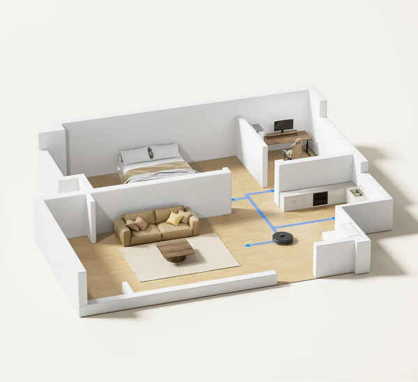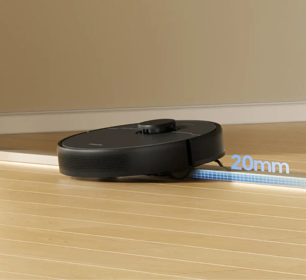 Без усилий преодолевая 20-миллиметровый порог, этот робот-пылесос легко маневрирует между препятствиями, почти как в воздухе. Он плавно перемещается между комнатами, не задевая дверные проемы и не застревая.