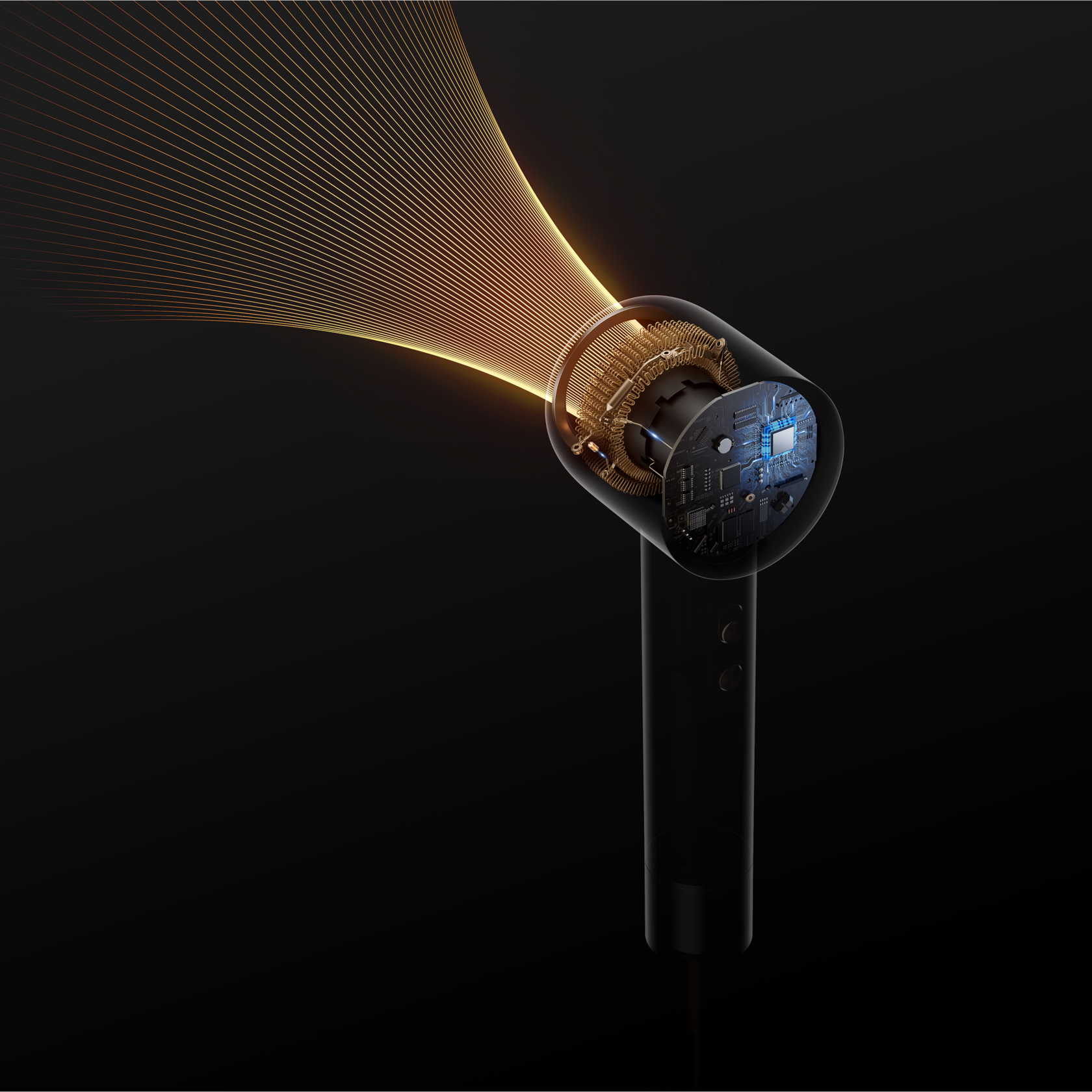 Бесщеточный электродвигатель создает мощный поток воздуха, высушивающий волосы длиной до плеч за 2 минуты. Двухуровневый нагреватель обеспечивает стабильный нагрев, благодаря чему сокращается время сушки и повышается ее комфорт.