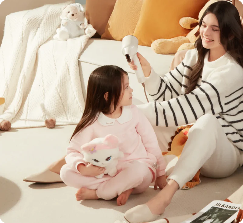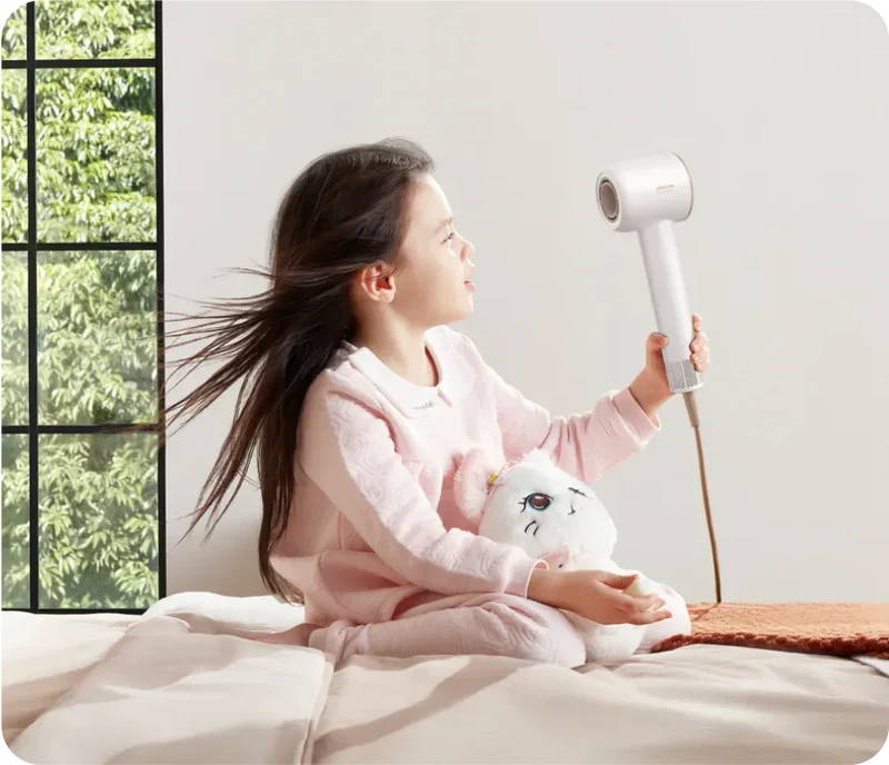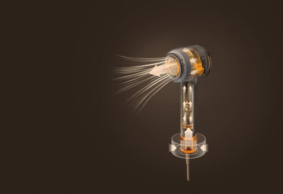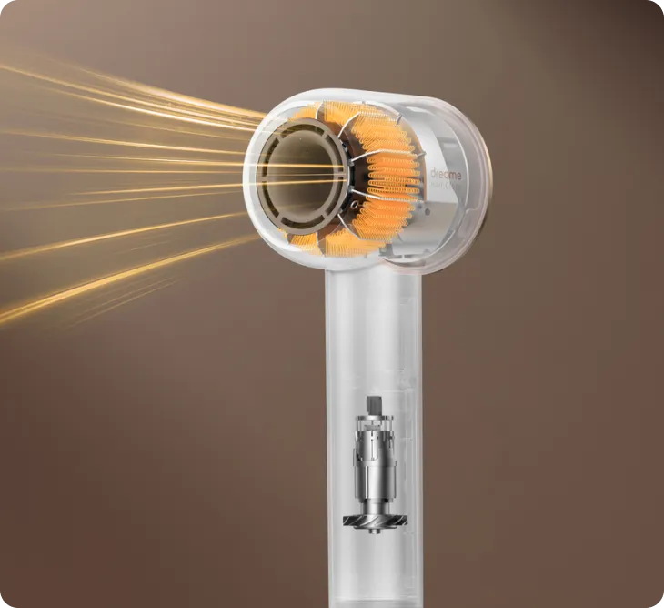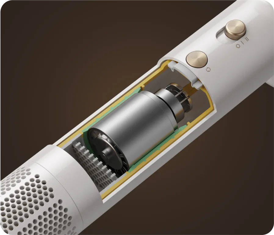 Мощный бесщёточный двигатель с оптимизированной вертикальной конструкцией обеспечивает мощный поток воздуха. Кроме того, он работает очень тихо — менее 76 дБ. Сушите волосы, не перекрывая окружающий воздух.