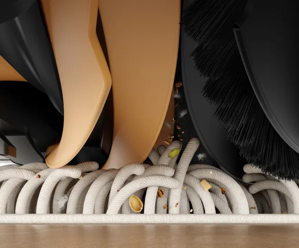 Щетки копают глубоко, чтобы захватить мелкую пыль и длинные волосы из каждого уголка.