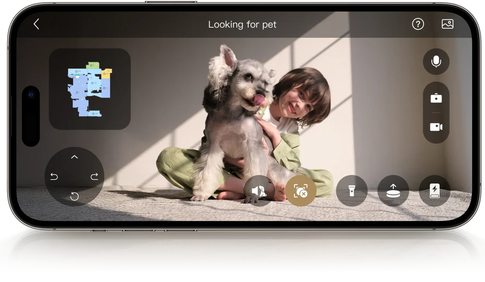 Проверяйте своего питомца в любое время с помощью «Режима поиска домашних животных» и позвольте роботу сделать фотографию для вас.
