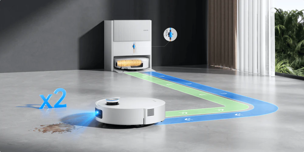 OmniSight™ 2.0 обеспечивает более точную навигацию, картографирование и избегание препятствий с помощью двойных камер высокого разрешения 160° и выдвижного датчика LDS 360°, гарантируя, что не пропущено ни одного пятна и ни один заблудший носок не стоит на пути.