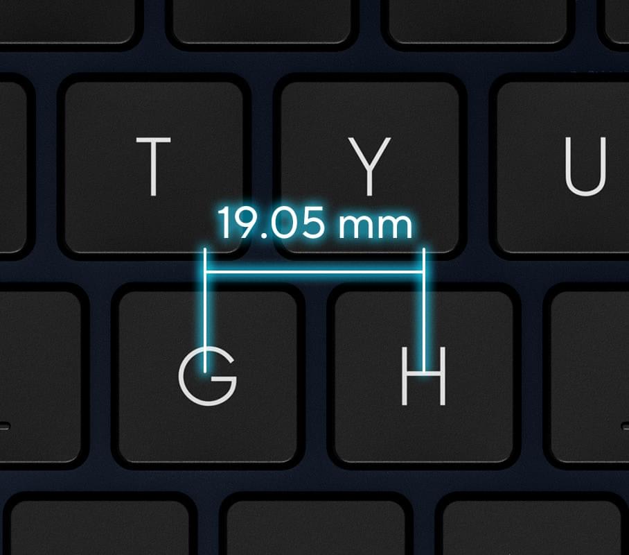 Pasul tastelor de 19,05 mm corespunde pasului tastelor de pe tastatura de birou, astfel încât vă puteți desfășura munca rapid și precis, bucurându-vă de confort și precizie superioară la tastare.