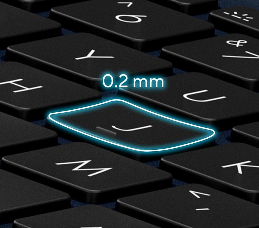 Adâncitura capacului tastei de 0,2 mm este proiectată pentru a se potrivi cu forma degetelor dvs., oferind o ghidare blândă a degetelor către punctul ideal de contact cu tastele.