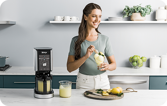 Превращайте практически любые ингредиенты в освежающий, сливочный и абсолютно вкусный десерт. С Ninja CREAMi Deluxe NC502 вы не просто готовите домашнее ремесленное мороженое, но и исследуете целый мир вкусов и текстур: от нежного джелато и фруктового сорбета до персонализированных миксов с хрустящими топпингами. Новая модель позволяет вам создавать энергетические слаши, сливочные фраппе, полезные замороженные йогурты или освежающие замороженные напитки, всего за несколько минут, прямо на вашей кухне. Готовьте умно, охлаждайтесь стильно – с Ninja CREAMi Deluxe.