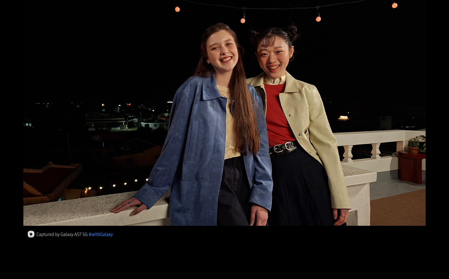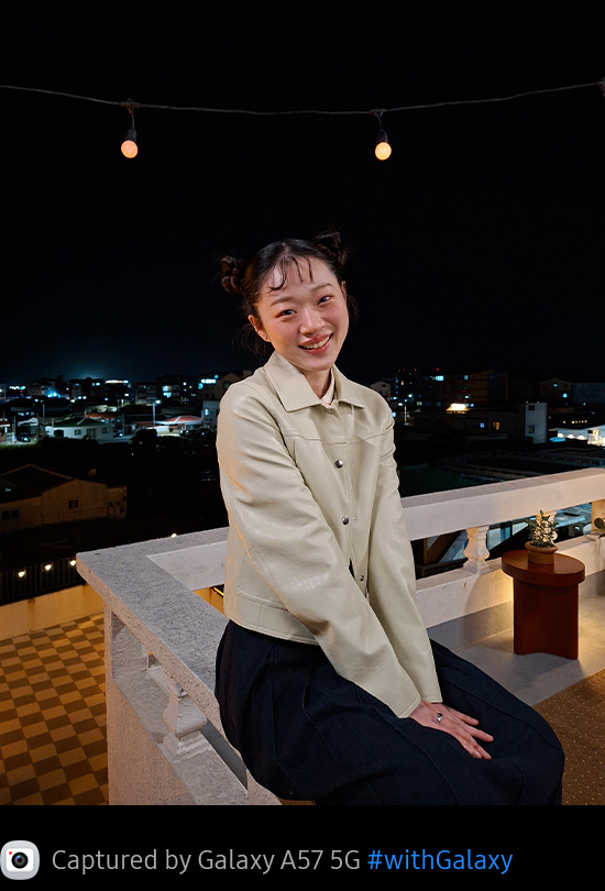 Покоряйте ночь и запечатлевайте незабываемые моменты благодаря оптимизированной функции Ночной съемки на Galaxy A57 5G. Широкоугольная камера поддерживает улучшенную обработку сигналов изображения (ISP) для более быстрой обработки изображений, что значительно снижает количество поглощенного шума. Поэтому на ночных снимках вы можете увидеть более четкие детали с меньшим размытием. Сенсор камеры Galaxy A57 5G также имеет пиксели размером 1,0 мкм, которые поглощают больше света из окружающей среды, что позволяет создавать более яркие и реалистичные видео с низким уровнем шума в условиях слабого освещения.