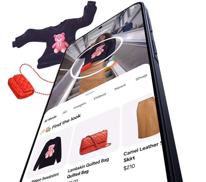 Для поиска в Google используйте функцию Circle to Search, чтобы найти несколько элементов одного образа. Просто обведите одежду на экране, и система поможет найти нужную вещь — от верхней одежды до обуви и других вещей — в одном поиске. Обведите, найдите и откройте для себя желаемый образ, где бы вы ни находились.