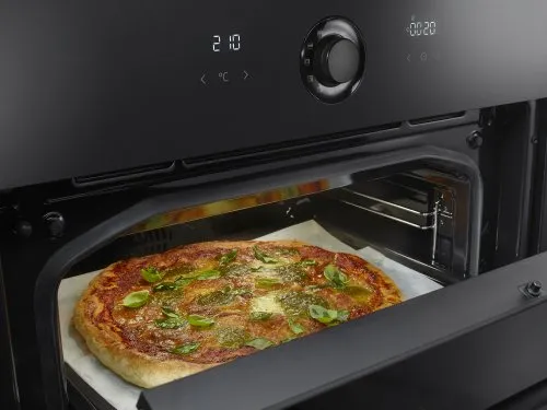 Превосходные результаты приготовления достигаются за счет продуманного расположения верхних нагревательных элементов, при котором малый нагреватель находится внутри большого. Благодаря этому тепло распределяется равномерно, поэтому блюдо запекается до хрустящей корочки, оставаясь нежным и сочным внутри.