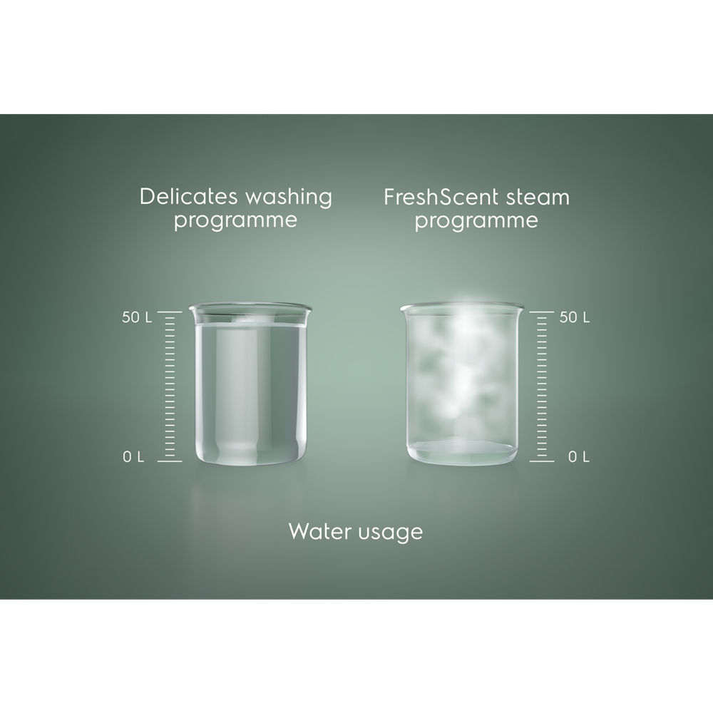 Programul SteamCare reface hainele cu abur, reducând ridurile și minimizând nevoia de călcat. Datorită acestui fapt, hainele își păstrează forma și textura mai mult timp. În plus, sistemul FreshScent va împrospăta țesătura între spălări cu parfum și abur aplicat ușor.