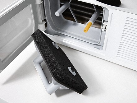 La uscătoarele Miele cu pompă de căldură, schimbătorul de căldură este protejat de un sistem de filtrare eficientă şi nu necesită curăţare. Acest lucru asigură menţinerea redusă a consumului de energie pe întreaga durată de funcţionare a aparatului electrocasnic.