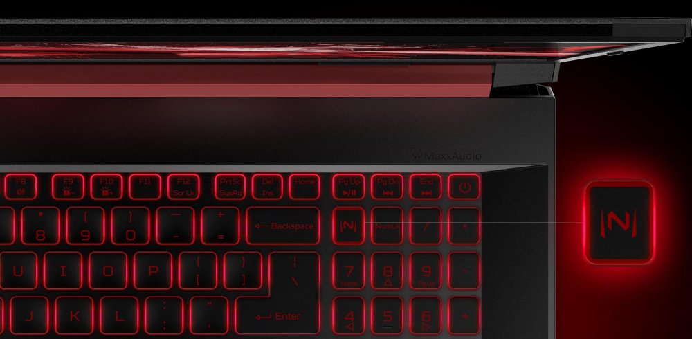 Accesați comenzi prin apăsarea tastei NitroSense și utilizați tastele WASD și tastele săgeți iluminate inteligent din spate. Tastatura cu adâncimea de apăsare a tastei de 1,6 mm oferă un confort de joc de neegalat. Iluminarea roșie spectaculoasă a tastelor vă permite să jucați chiar și în condiții de lumină slabă.