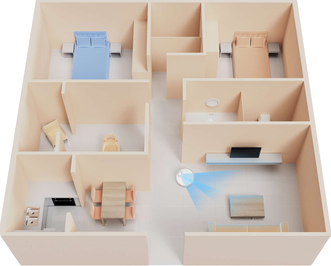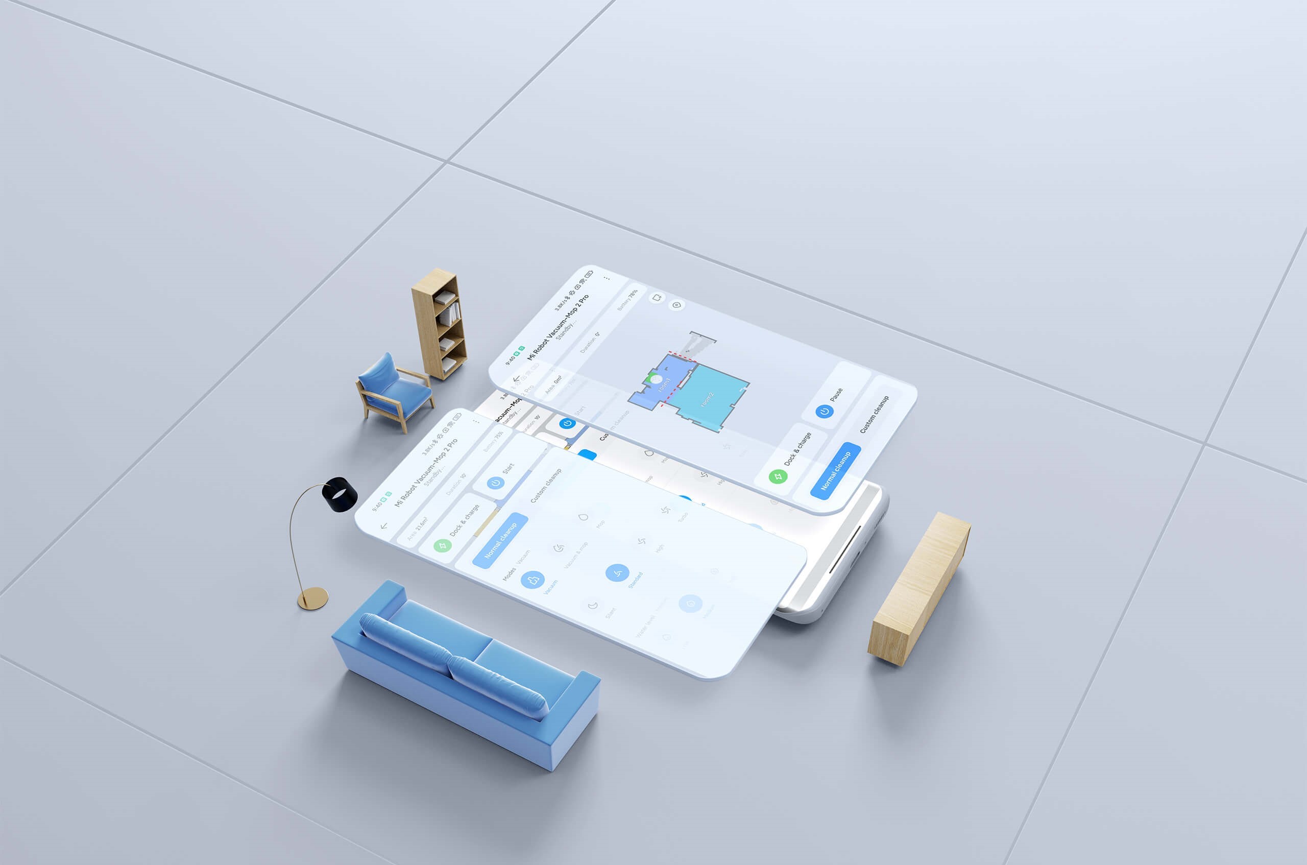 Теперь вы можете выбирать порядок уборки вашей спальни, гостиной и кухни в соответствии с вашими потребностями, чтобы не заносить грязь из одной комнаты в другую. Вы также можете отрегулировать мощность всасывания и объем воды в зависимости от типа пола и настроить индивидуальные планы уборки.